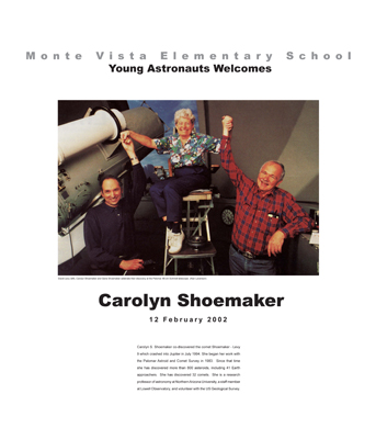 Anthony Anella served as a parent volunteer in support of the Young Astronauts Program and was personally responsible for bringing Carolyn Shoemaker, Harrison Schmidt, Sid Gutierrez and Larry Crumpler to Monte Vista Elementary School.